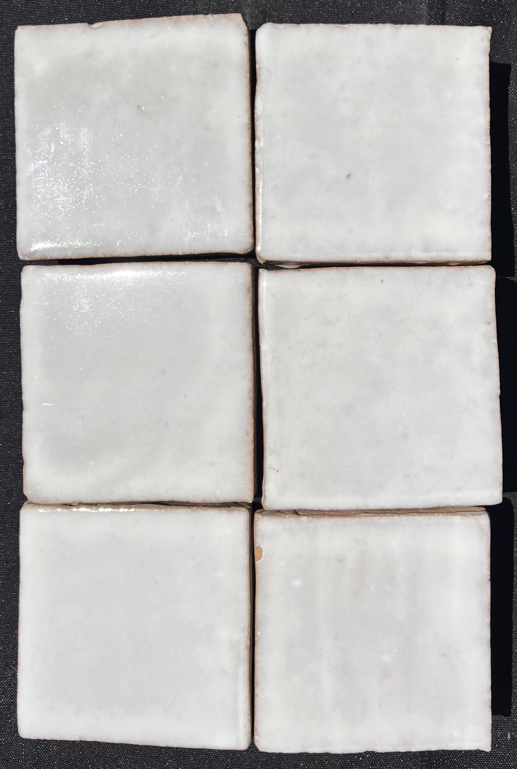 A terracotta square tile with a glossy white glaze.