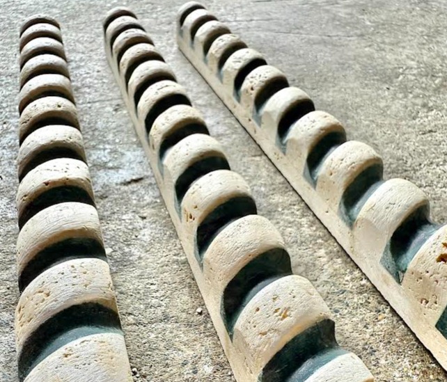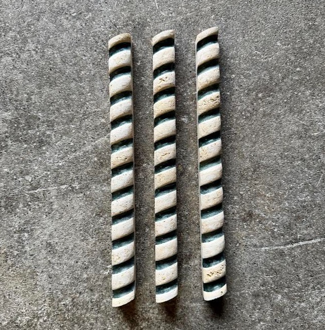 An ivory travertine & green marble 3D rope border.